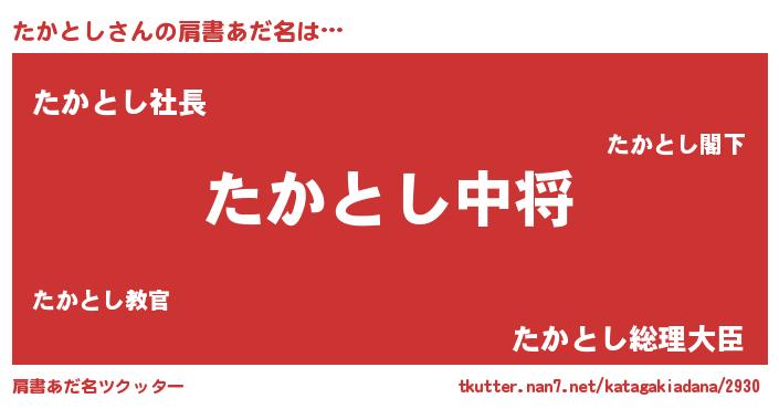 | ヘコむあだ名 | 『たかもー』『つくし』『たか太郎』 |