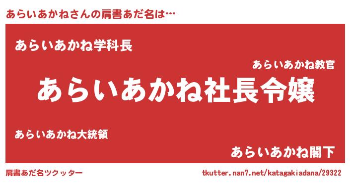 | 男性向けラノベタイトル風あだ名 | 『あらいあかねの憂鬱』 |