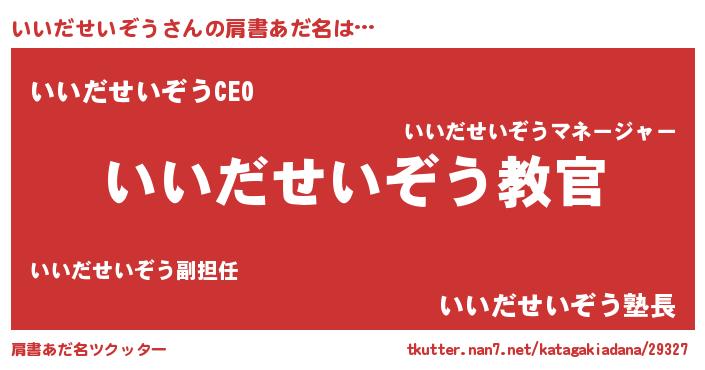 | 男性向けラノベタイトル風あだ名 | 『この素晴らしい世界にいいだせいぞうを!』 |