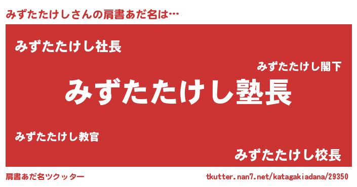 | 意味不明あだ名 | 『とにかく怪しいみずたたけし』 |