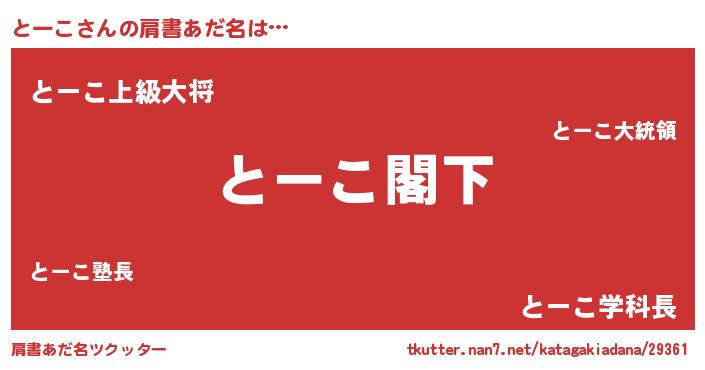 | 男性向けラノベタイトル風あだ名 | 『Re:とーこから始める異世界生活』 |