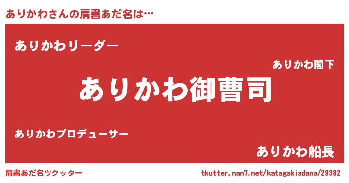 | 男性向けラノベタイトル風あだ名 | 『アリカワアートオンライン』 |