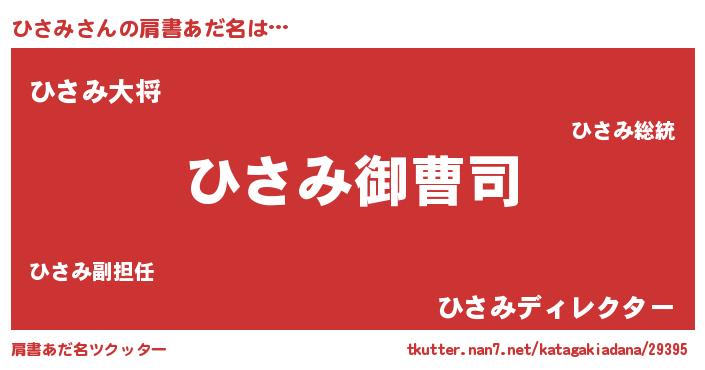 | 男性向けラノベタイトル風あだ名 | 『ひさみの憂鬱』『ヒサミスレイヤー』 |