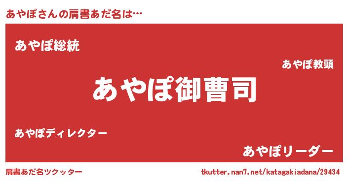 | 女子向けラノベタイトル風あだ名 | 『あやぽ姫と円卓の騎士』『闇のあやぽ』 |