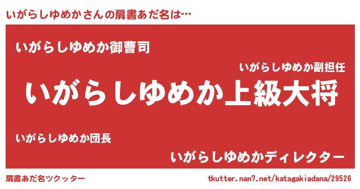 | ヘコむあだ名 | 『いがっふぃ~』『いがらしゆめか(遠い目)』 |