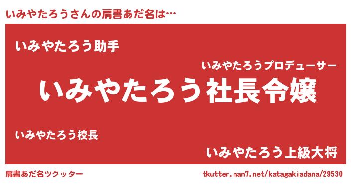 | ヒーロー風カッコイイあだ名 | 『スーパーイミヤタロウ』『魔戒騎士イミ』 |