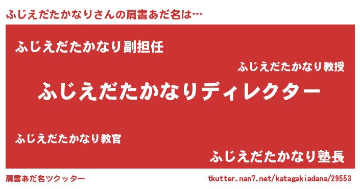| 男性向けラノベタイトル風あだ名 | 『ふじえだたかなりに滅ぼされるだけの簡単なお仕事です』 |