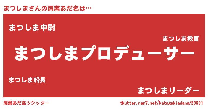 | 男性向けラノベタイトル風あだ名 | 『はたらくまつしまさま!』 |