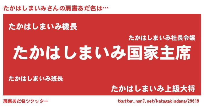 | 男性向けラノベタイトル風あだ名 | 『やはりたかはしまいみの青春ラブコメはまちがっている 』 |