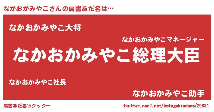 | 男性向けラノベタイトル風あだ名 | 『やはりなかおかみやこの青春ラブコメはまちがっている 』 |