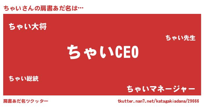 | ヘコむあだ名 | 『ちゃふぇ~』『ちゃい(震え声)』 |