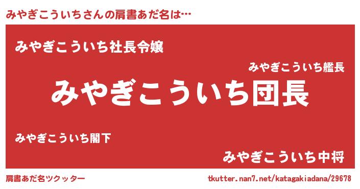 | ポケモン風あだ名 | 『ヒミヤギコウイチ』『ミヤチュウ』 |