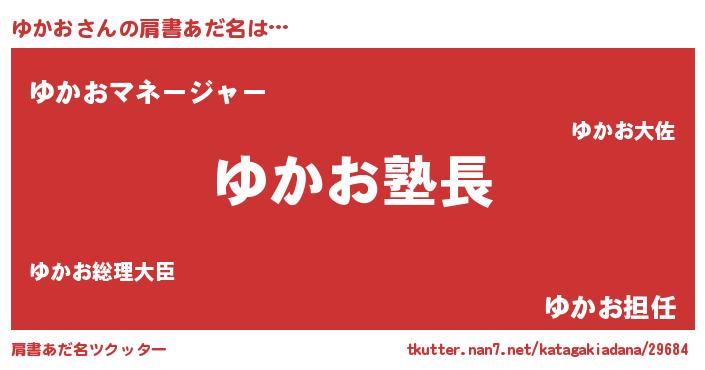 | 女子向けラノベタイトル風あだ名 | 『ゆかおは平凡を望む』『ゆかおの婚約者』 |