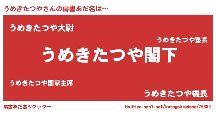 | 意味不明あだ名 | 『自称うめきたつや』 |