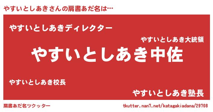 | 男性向けラノベタイトル風あだ名 | 『ヤスイトシアキスレイヤー』 |