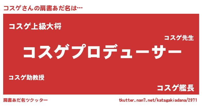 | ヘコむあだ名 | 『コスゲ(苦笑)』『コスぷりん』 |