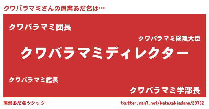 | 意味不明あだ名 | 『とにかく怪しいクワバラマミ』 |
