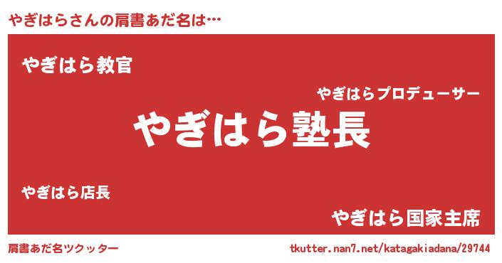 | 意味不明あだ名 | 『とにかく怪しいやぎはら』 |