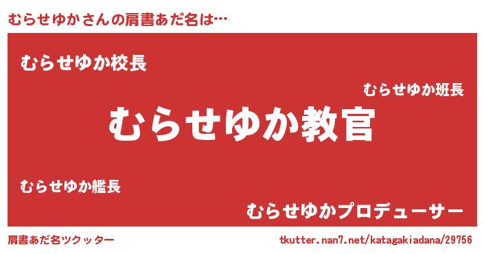 | 男性向けラノベタイトル風あだ名 | 『この素晴らしい世界にむらせゆかを!』 |