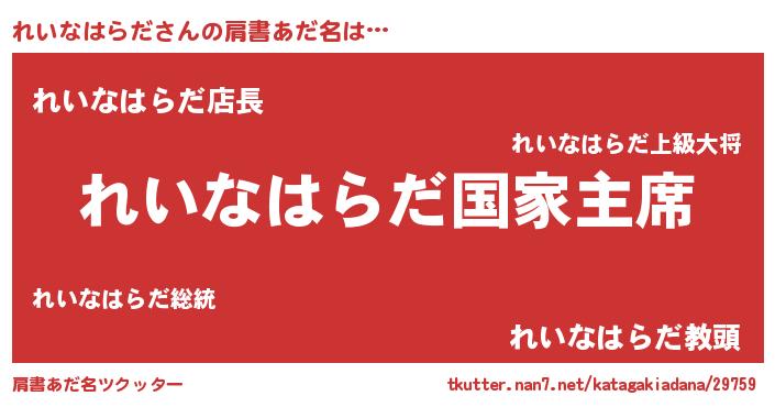 | 意味不明あだ名 | 『れいなはらだフォーエバー』 |