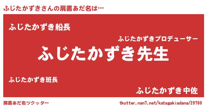 | ヘコむあだ名 | 『ふじたかずき(小並感)』『ふじを』 |