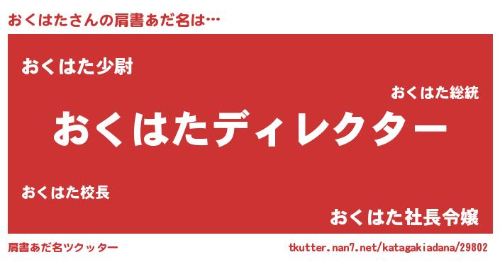 | ヘコむあだ名 | 『おくにゅー』『おくはた(笑)』 |