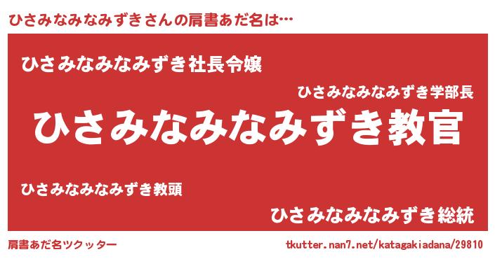 | 男性向けラノベタイトル風あだ名 | 『この素晴らしい世界にひさみなみなみずきを!』 |