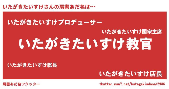 | 意味不明あだ名 | 『住所不定無職いたがきたいすけ(91歳)』 |