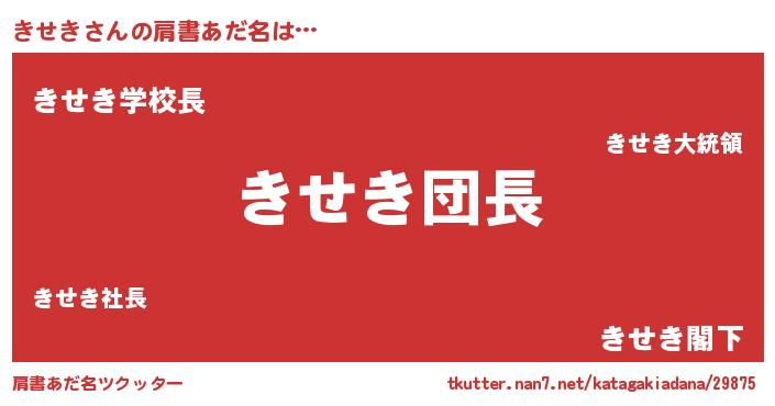 | ヘコむあだ名 | 『きせお』『酢こんぶ』『きせもー』 |