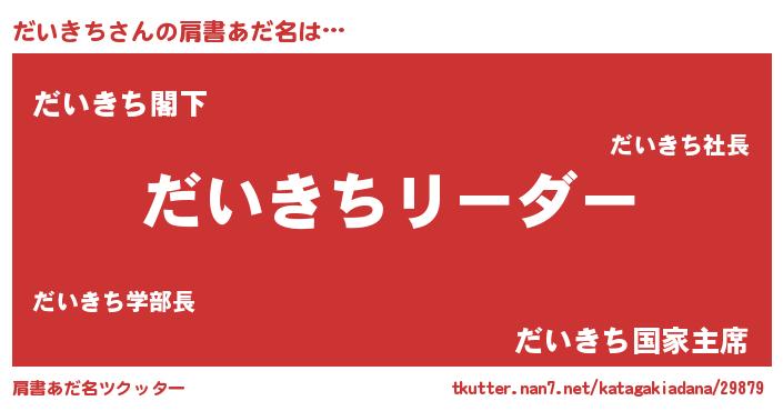 | ヒーロー風カッコイイあだ名 | 『黄金騎士ダイ』『サイバー戦士ダイキチ』 |