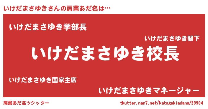 | 可愛いあだ名 | 『いけだまさゆきママ』『いけちゅっちゅ』 |