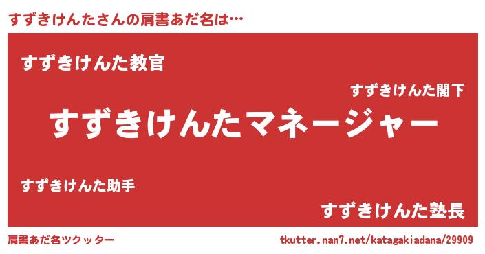 | 男性向けラノベタイトル風あだ名 | 『すずきけんたに滅ぼされるだけの簡単なお仕事です』 |