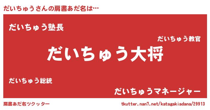| ポケモン風あだ名 | 『ダイキング』『ヒダイチュウ』 |