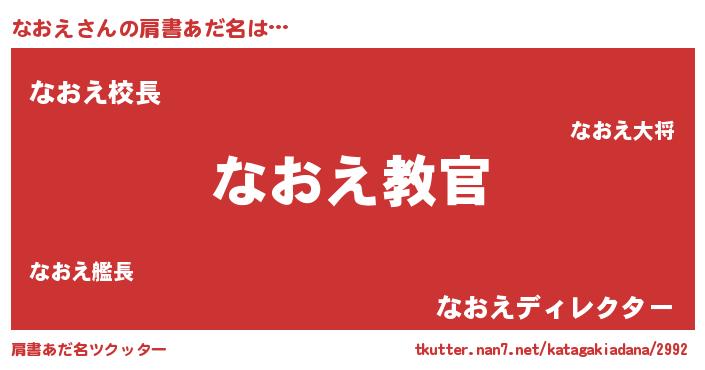 | 男性向けラノベタイトル風あだ名 | 『この素晴らしい世界になおえを!』 |