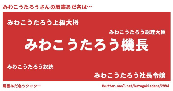 ヒーロー風カッコイイあだ名 | 『スーパーミワコウタロウ』 |