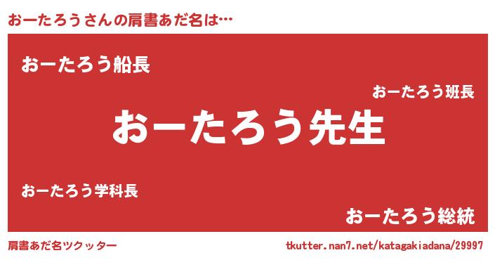 | ヘコむあだ名 | 『おーたろう(小並感)』『おーお』 |
