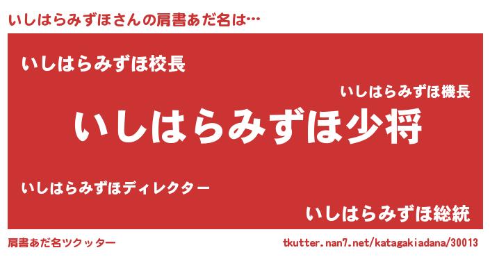 | 可愛いあだ名 | 『いしぷりん』『いしはらみずほママ』 |