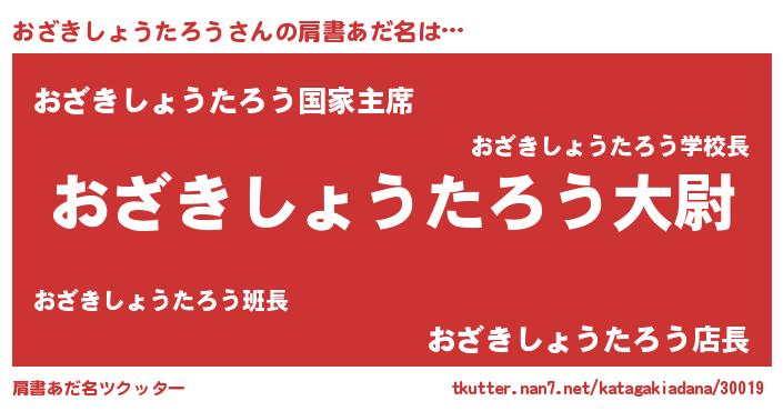 | 男性向けラノベタイトル風あだ名 | 『おざきしょうたろう~年齢イコール彼女いない歴の魔法使い~』 |