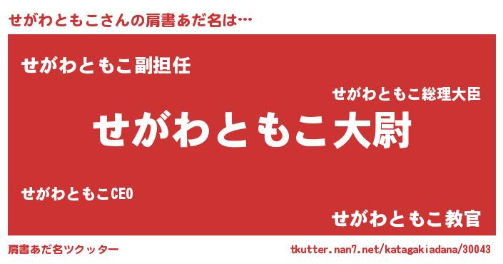 | ヒーロー風カッコイイあだ名 | 『ネオセガワトモコ』『仮面セガダー』 |