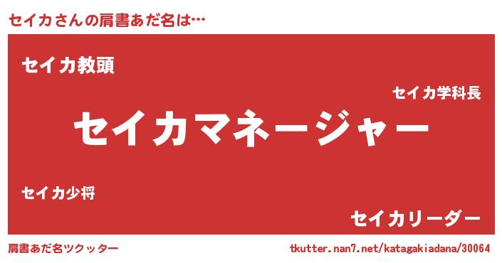 | ヘコむあだ名 | 『セイカ(笑)』『セイを』『なまこ酢』 |