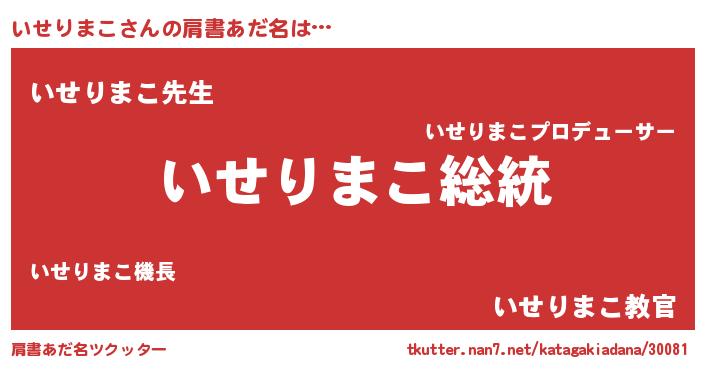 | 意味不明あだ名 | 『自称いせりまこ』『永久保存いせりまこ』 |