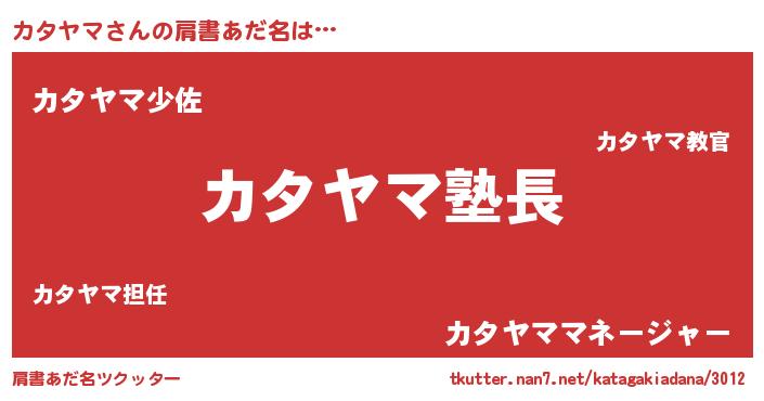 | 男性向けラノベタイトル風あだ名 | 『カタヤマの嫁は女の子じゃないと思った?』 |