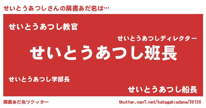 | 意味不明あだ名 | 『とにかく怪しいせいとうあつし』 |