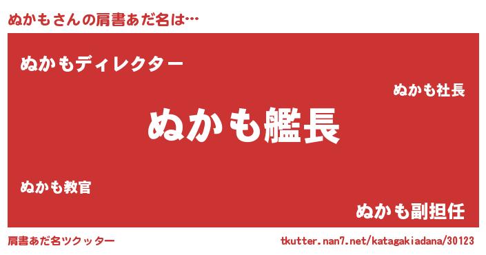 | 欧米人風あだ名 | 『ぬかも・ステッグマイヤー』 |