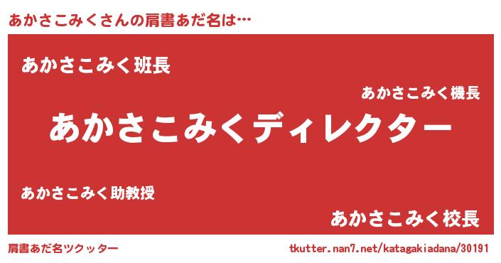 | 欧米人風あだ名 | 『アンジェラ・あかさこみく』 |