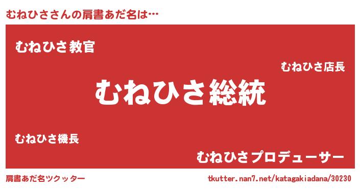 | ヘコむあだ名 | 『むねもー』『つくし』『むねお』 |