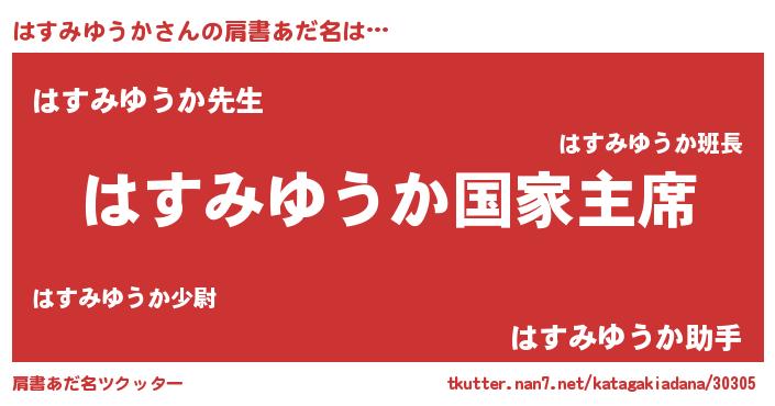 | 意味不明あだ名 | 『はすみゆうかフォーエバー』 |