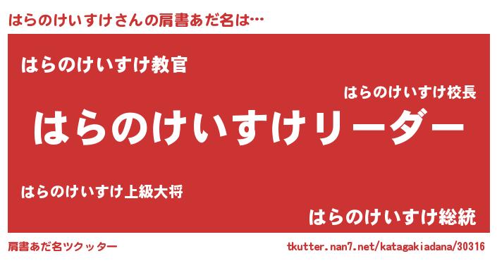 | 女子向けラノベタイトル風あだ名 | 『はらのけいすけは平凡を望む』 |