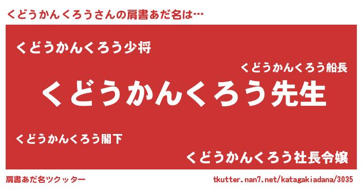 | 女子向けラノベタイトル風あだ名 | 『くどうかんくろうの契約王妃』 |