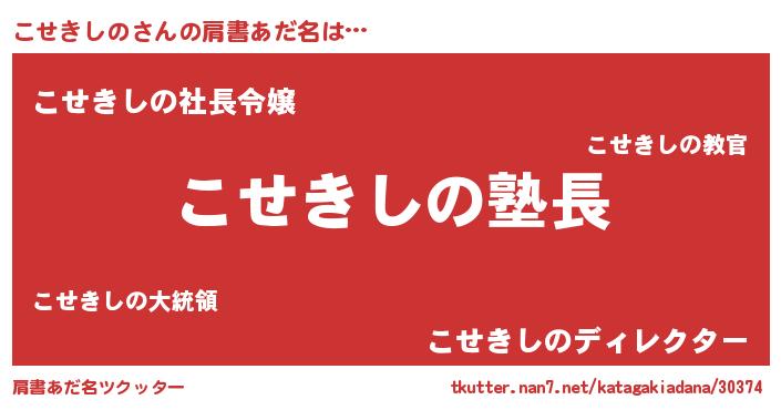 | ヒーロー風カッコイイあだ名 | 『天弓騎士コセ』『スーパーコセキシノ』 |